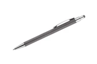 DAWEI to klasyczny cienki długopis wykonany z metalu w stonowanych kolorach dla miłośników ponadczasowego uniwersalnego wzornictwa. Na górze końcówka typu touch do obsługi ekranów dotykowych w kolorze dopasowanym do koloru korpusu. Długopis automatyczny. Wkład typu X20 o grubości 1.0 mm w kolorze niebieskim.