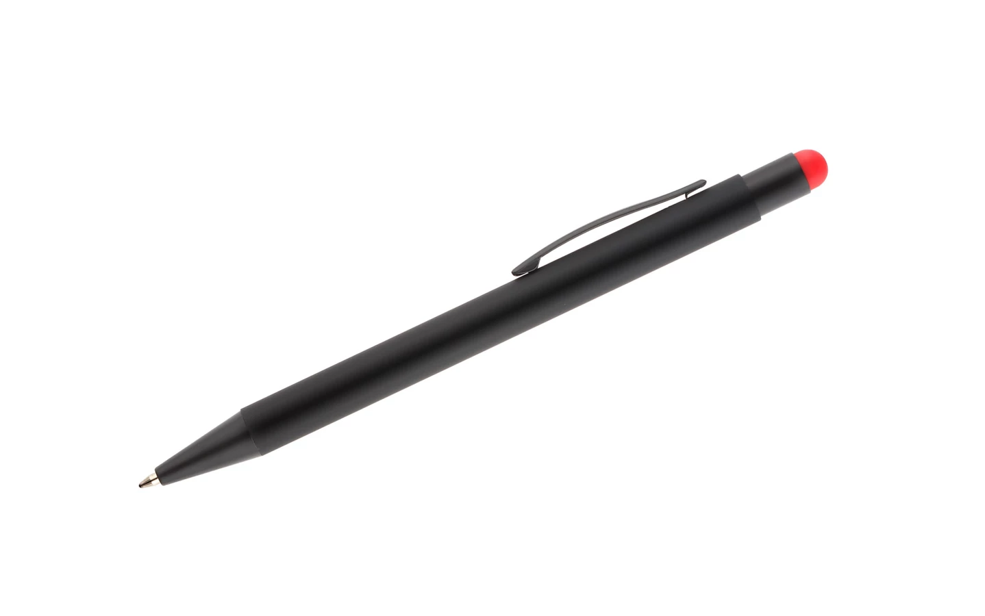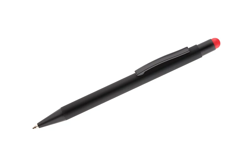 NIRO to długopis z wyjątkowym efektem znakowania. Kolor grawera jest zbliżony do koloru końcówki touch do obsługi ekranów dotykowych. Korpus wykonany z aluminium pokrytego gumowaną powłoką typu soft touch. Wykończenia w kolorze czarnym. Długopis automatyczny. Wkład typu G2 w kolorze niebieskim.