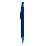 Długopis z kolorowym trzonem i błyszczącymi elementami, końcówka touch pen umożliwiająca obsługę ekranów dotykowych, wkład w niebieskim kolorze, produkt wykonany z aluminium
