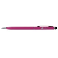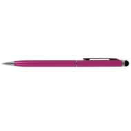 Długopis z kolorowym trzonem i elementami w srebrnym kolorze, niewielka średnica nadaje nowoczesnego wyglądu, końcówka touch pen umożliwiająca obsługę ekranów dotykowych, wkład w niebieskim kolorze, produkt wykonany z aluminium