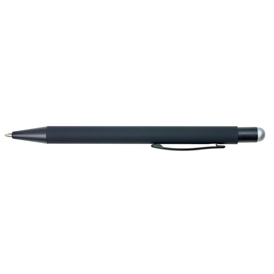 Długopis, touch pen z gumowanym wykończeniem, grawer ukazuje powierzchnię w kolorze zbliżonym do koloru gumowej końcówki lub w kolorze białym