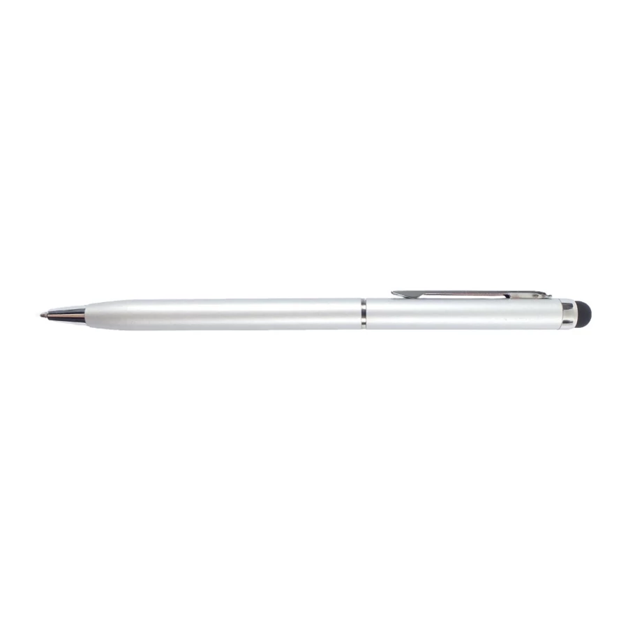 Długopis, touch pen, przekręcany, końcówka touch pen umożliwia obsługę ekranów dotykowych, wkład w niebieskim kolorze, wykonany z aluminium