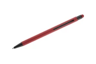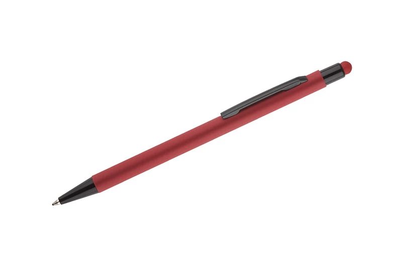 Klasyczny, cienki długopis PRIM wykonany z aluminium pokrytego gumowaną powłoką typu soft touch. Na górze końcówka do obsługi ekranów dotykowych w kolorze dopasowanym do korpusu długopisu. Wykończenia w kolorze czarnym. Długopis automatyczny. Wkład typu X20 w kolorze niebieskim.