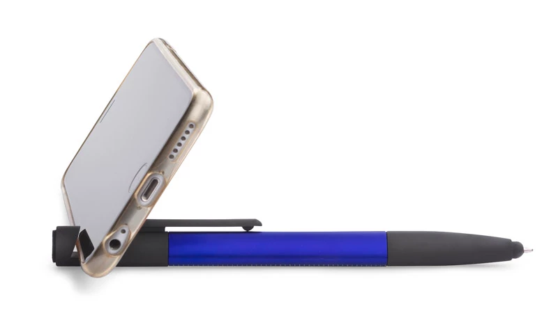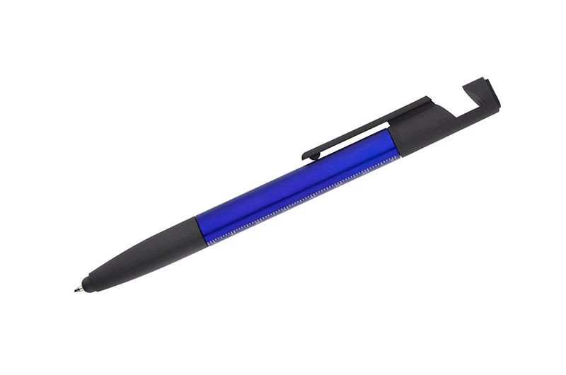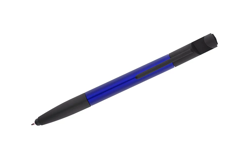 Praktyczny SET w małej formie mieści aż 8 przydatnych funkcji: długopis, końcówka do obsługi ekranów dotykowych, czyścik ekranów, stojak do telefonu, 2 śrubokręty, 2 linijki (calowa i centymetrowa). Wykonany z tworzywa sztucznego. Mechanizm typu twist. Wkład typu X20 w kolorze niebieskim.