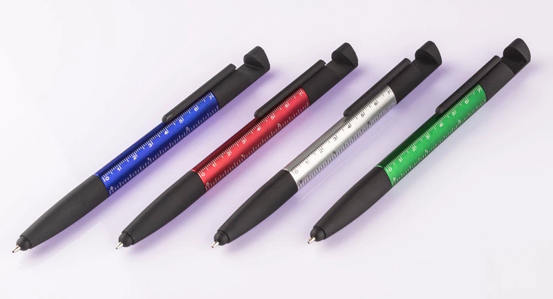 Praktyczny SET w małej formie mieści aż 8 przydatnych funkcji: długopis, końcówka do obsługi ekranów dotykowych, czyścik ekranów, stojak do telefonu, 2 śrubokręty, 2 linijki (calowa i centymetrowa). Wykonany z tworzywa sztucznego. Mechanizm typu twist. Wkład typu X20 w kolorze niebieskim.