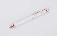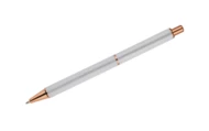 Matowy długopis z akcentami w kolorze różowego złota. Korpus oraz klips wykonane z metalu
