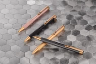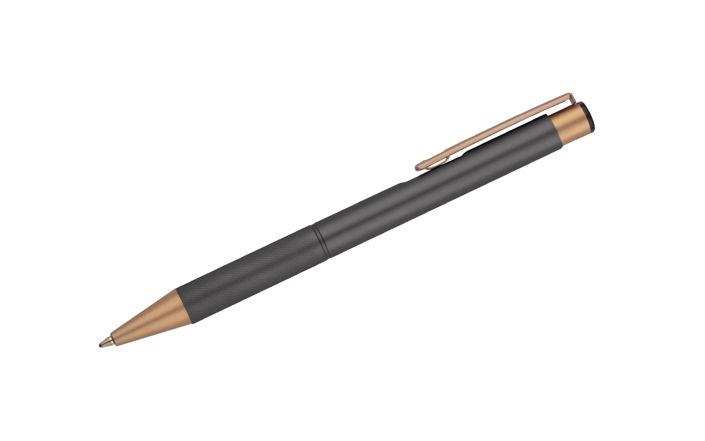 Długopis VITE to elegancki model wykonany z metalu, wyposażony w automatyczny mechanizm wysuwu. Korpus w matowym wykończeniu kontrastuje z chromowanymi detalami i klipem w kolorze szampańskiego złota. Długopis posiada wkład typu G2 z tuszem półżelowym o grubości pisania 1,0 mm, który zapewnia płynny, równy zapis. Dzięki solidnej konstrukcji i starannemu wykończeniu stanowi idealny gadżet reklamowy dla osób ceniących nowoczesny design i precyzję pisania.