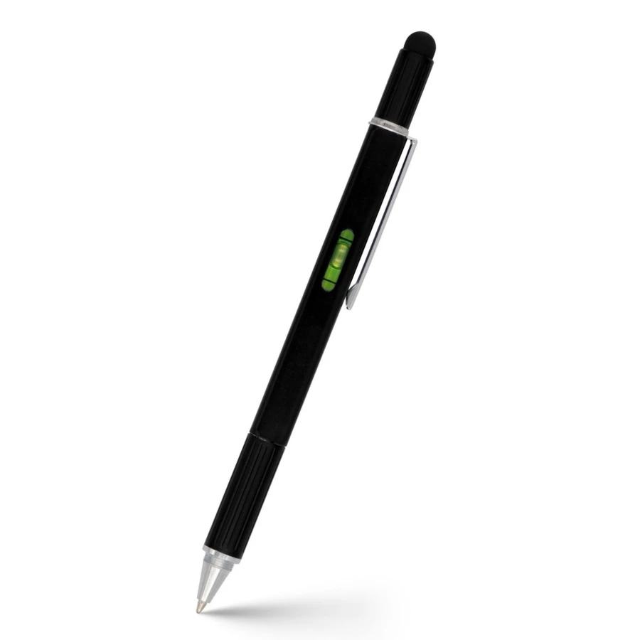 Długopis wielofunkcyjny, aluminiowy korpus, linijka, poziomica, podwójny wkrętak (płaski i krzyżak), touch pen