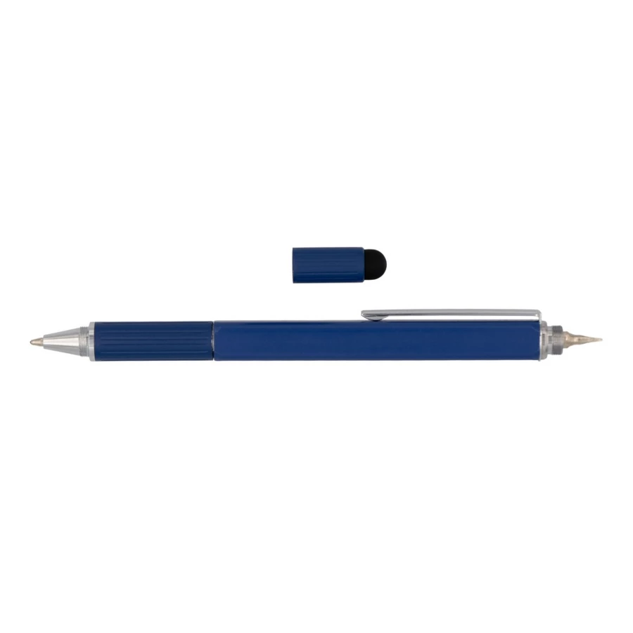 Długopis wielofunkcyjny, aluminiowy korpus, linijka, poziomica, podwójny wkrętak (płaski i krzyżak), touch pen