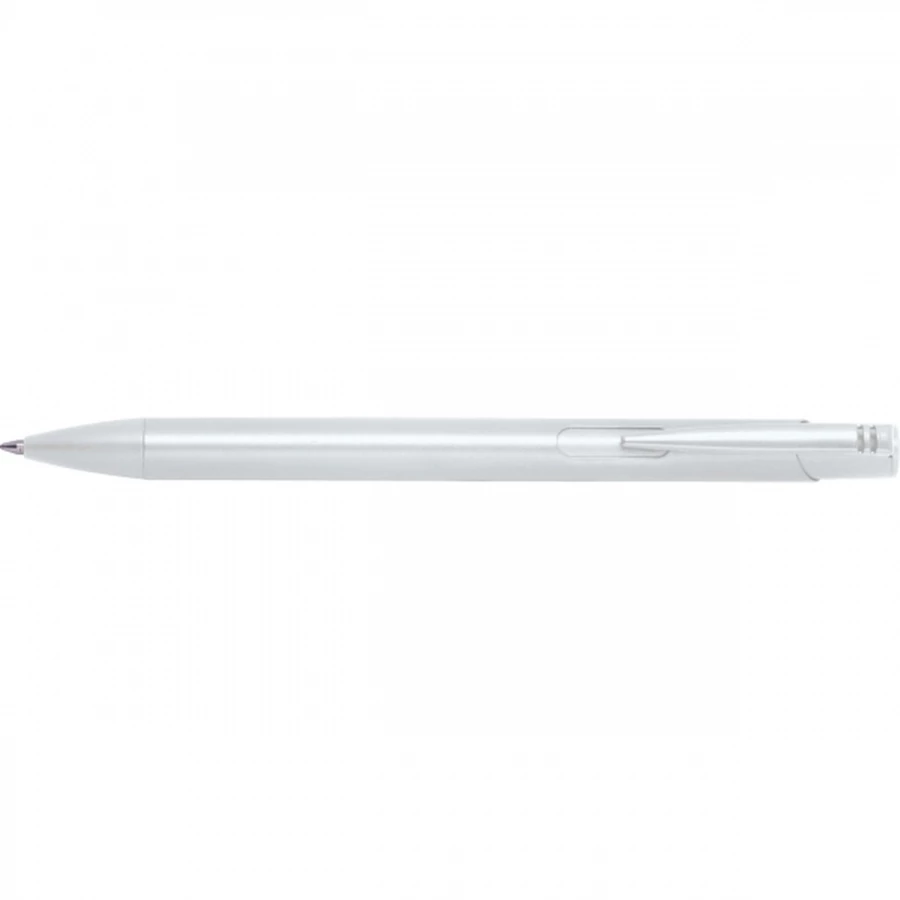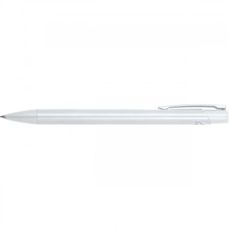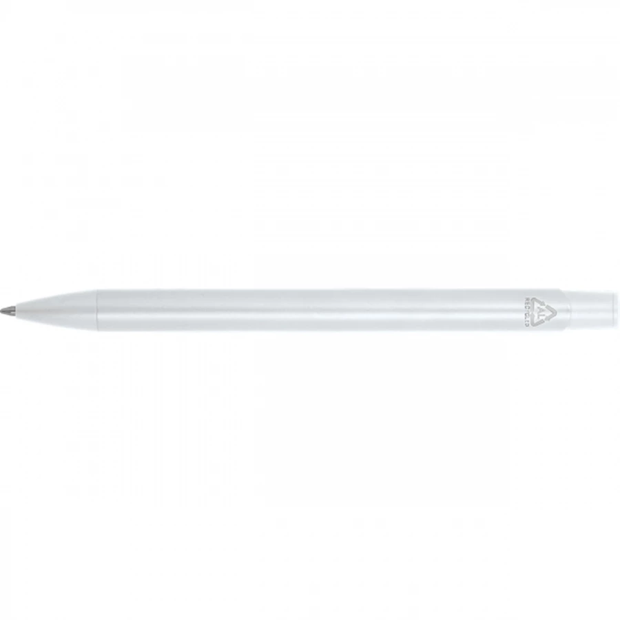 Długopis wykonany z recyklingowego aluminium z niebieskim wkładem o dużej pojemności.