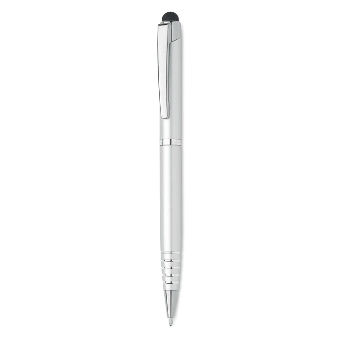 Obrotowy długopis z aluminium pochodzącego z recyklingu z rysikiem do ekranów touch pen. Niebieski tusz.