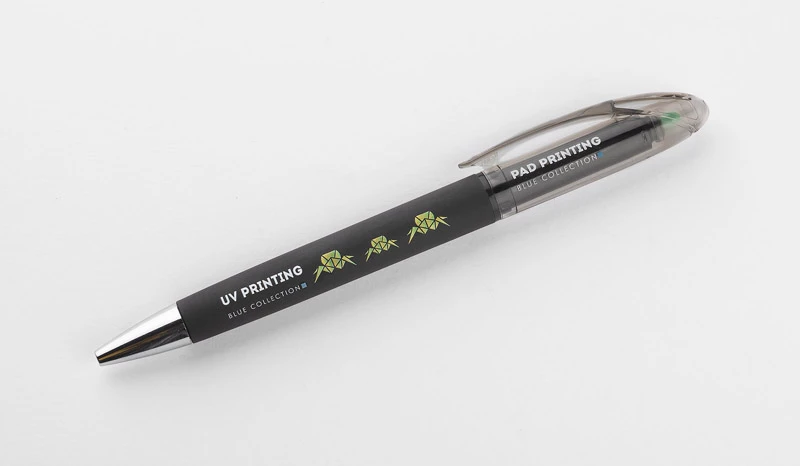 HILIG to dwa przydatne gadżety w jednym. Na górze tradycyjnego długopisu został umieszczony zakreślacz w żywym kolorze. Pokryty gumową powłoką korpus długopisu jest niezwykle przyjemny w dotyku. Długopis z mechanizmem typu twist, wkład długopisu w kolorze niebieskim.