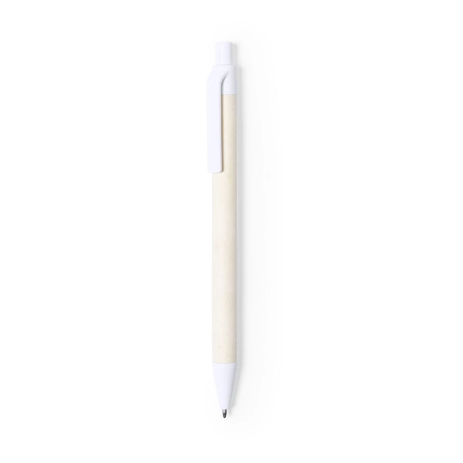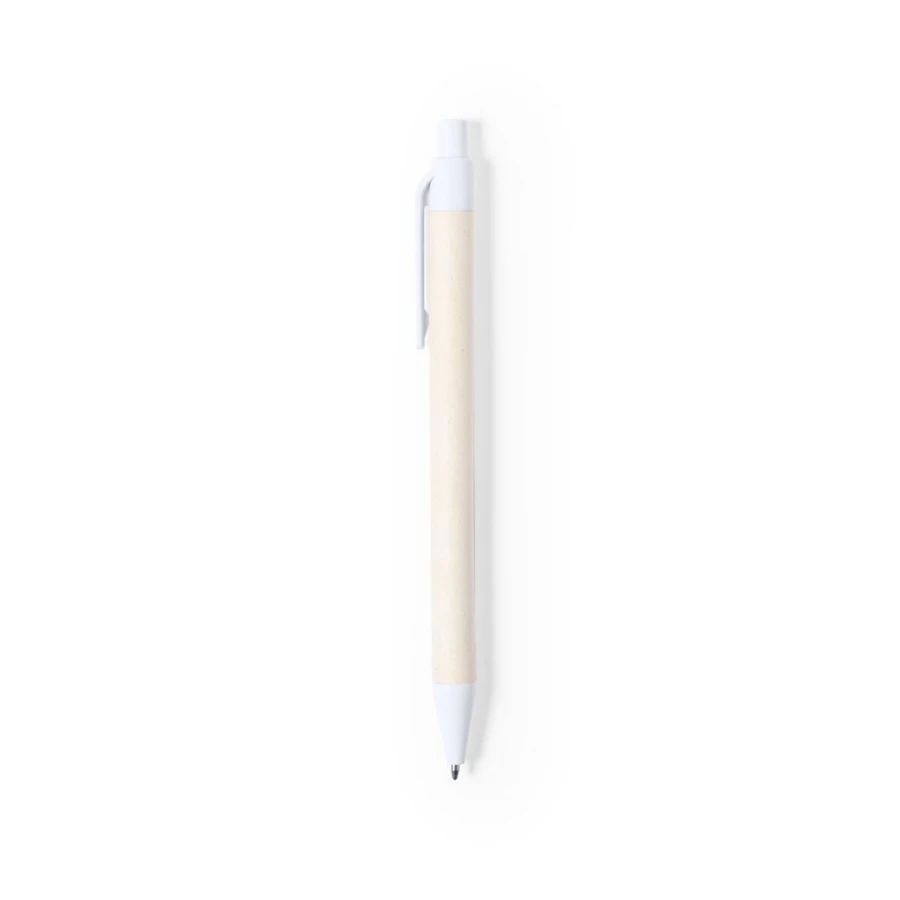 Długopis z trzonem ze zrecyklingowanych kartoników po mleku i białymi elementami
