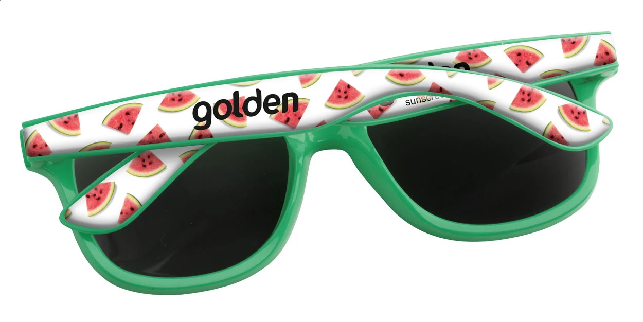 Plastikowe okulary przeciwsłoneczne ze specjalnymi zausznikami do nadruku Epoxy. Posiadają filtr UV 400. Cena zawiera nadruk. Min. Zamówienie: 100szt.