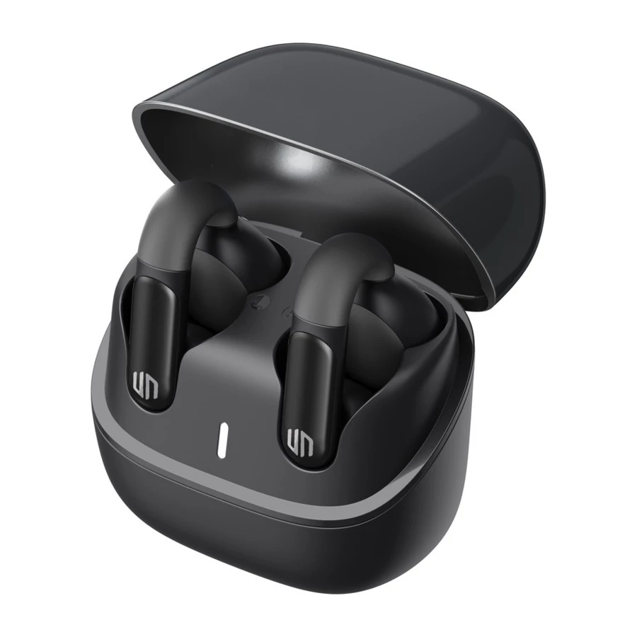 Słuchawki bezprzewodowe o otwartej konstrukcji, nie wkładane do ucha lecz mocowane na uchu, możliwość jednoczesnego słuchania muzyki i dźwięków otoczenia, czas pracy na baterii: 6,5 godziny dla słuchawek i 20 godzin z etui, funkcja ENC dla krystalicznie czystej jakości rozmów, wodoodporność IPX4, wykonane z recyklingowanego ABS z certyfikatem RCS, zawartość materiałów z recyklingu: 55%, opakowanie ograniczające użycie plastiku, wolne od PVC