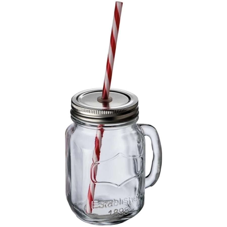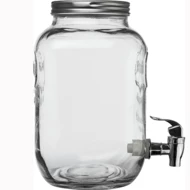 Dozownik do napojów o pojemności 4000 ml, w zestawie z czterema słoikami o pojemności 450 ml. Każdy. Całość wykonana ze szkła. Zestaw zawiera słomki.