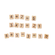 Drewniana gra edukacyjna do liczenia w bawełnianym woreczku. Zawiera 32 elementy.