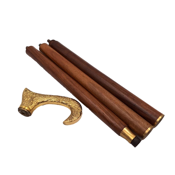 Materiał: drewniana laska, mosiężny uchwyt