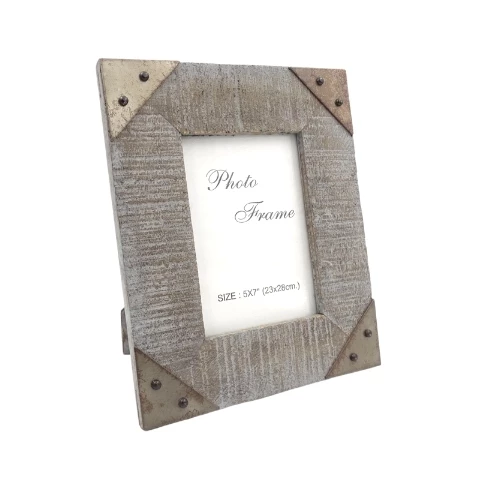 Ramka z drewnia mangowego inkrustowana elementami metalowymi kod 30374
