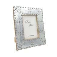 Ramka wykonana z drewna mangowego, inkrustowana metalem.