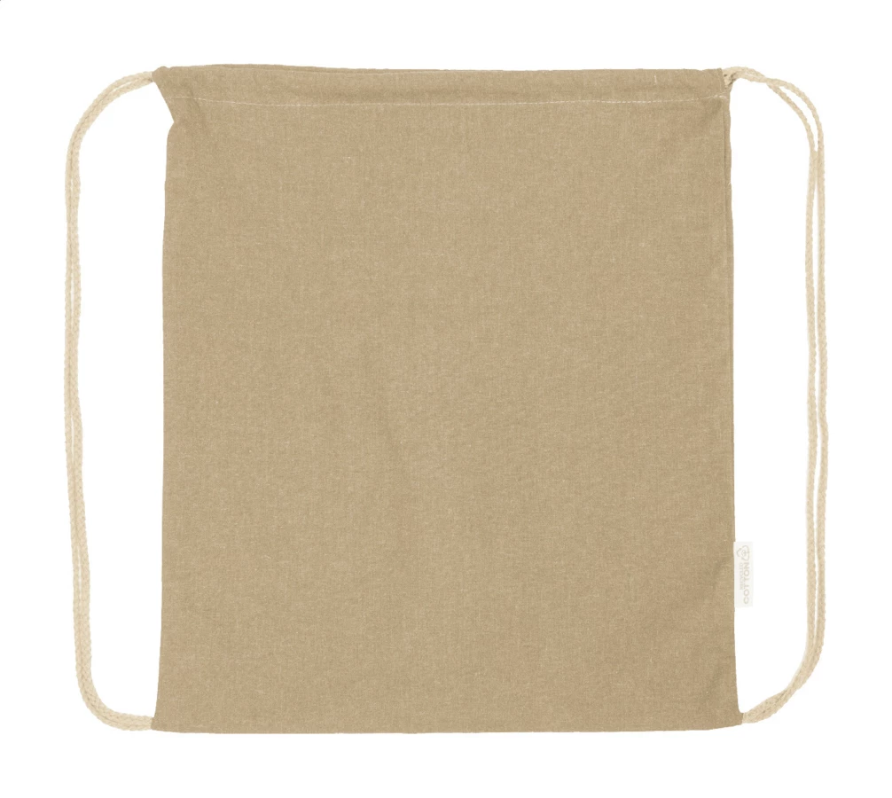 Worek ze sznurkami wykonany w 70% z bawełny z recyklingu i w 30% z poliestru RPET, o gramaturze 140 g/m². Z charakterystyczną metką z bawełny z recyklingu.