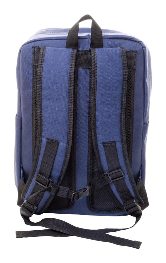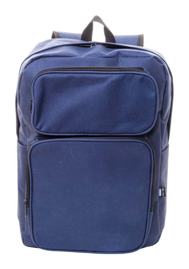Plecak RPET z główną komorą na suwak, 2 kieszeniami z przodu na suwak, kieszeniami bocznymi i wyściełaną przegrodą na laptopa (15") i tablet (10"). Z wyściełanym tyłem i paskami na ramiona. Poliester RPET 600D, z charakterystyczną metką RPET.