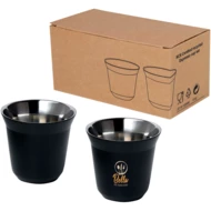 Zestaw 2 dwuściennych filiżanek do espresso ze stali nierdzewnej z certyfikatem RCS. Pojemność wynosi 80ml. Zapakowane w pudełko upominkowe wykonane z kartonu z recyklingu.