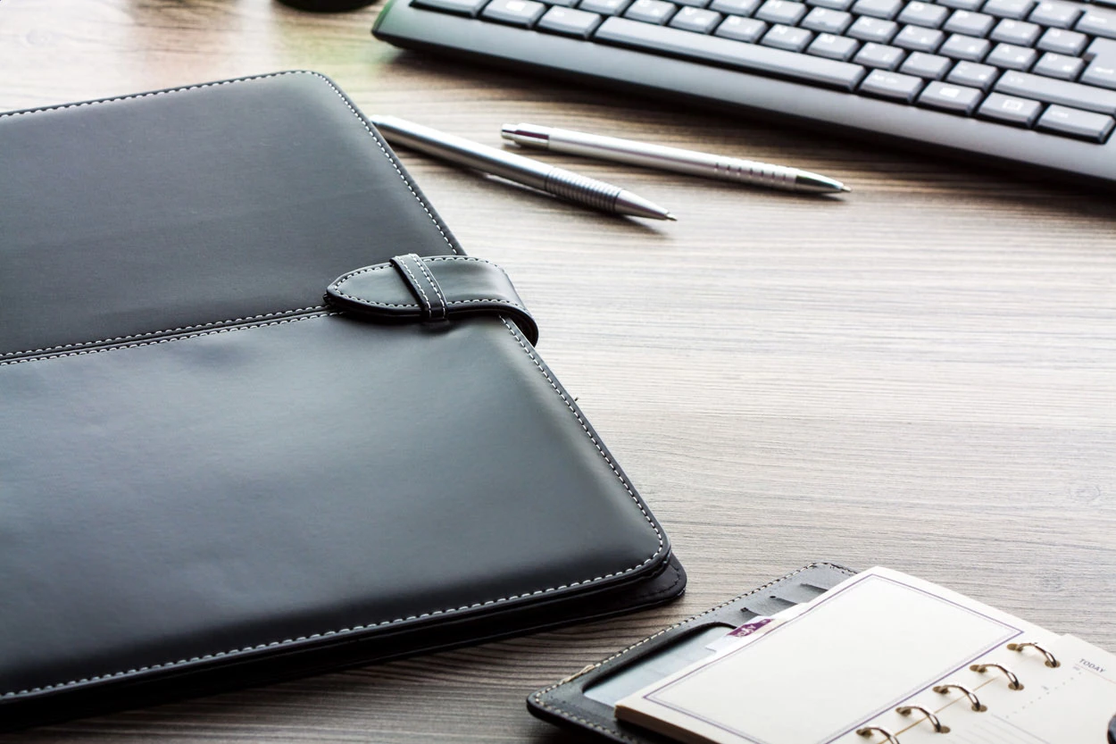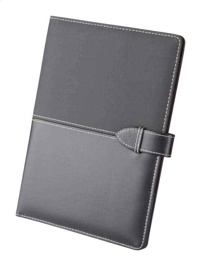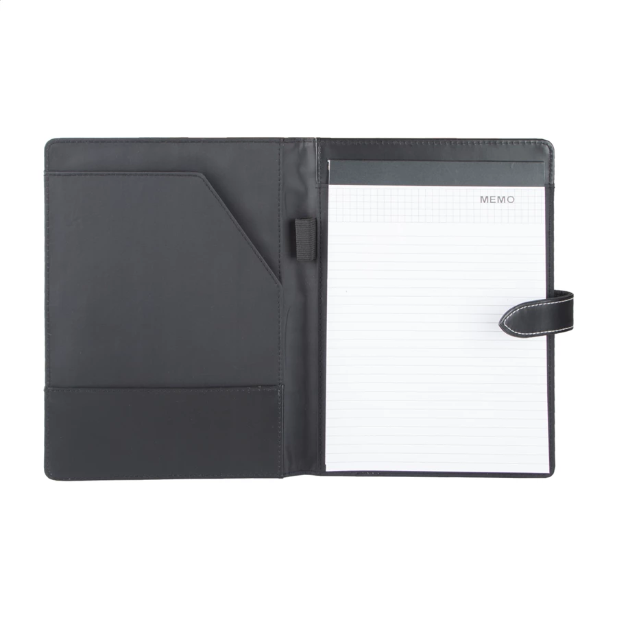 Teczka na dokumenty A5 ze skóry PU, z notatnikiem z 20 kartkami w linie oraz miejscem na długopis i wizytówki.