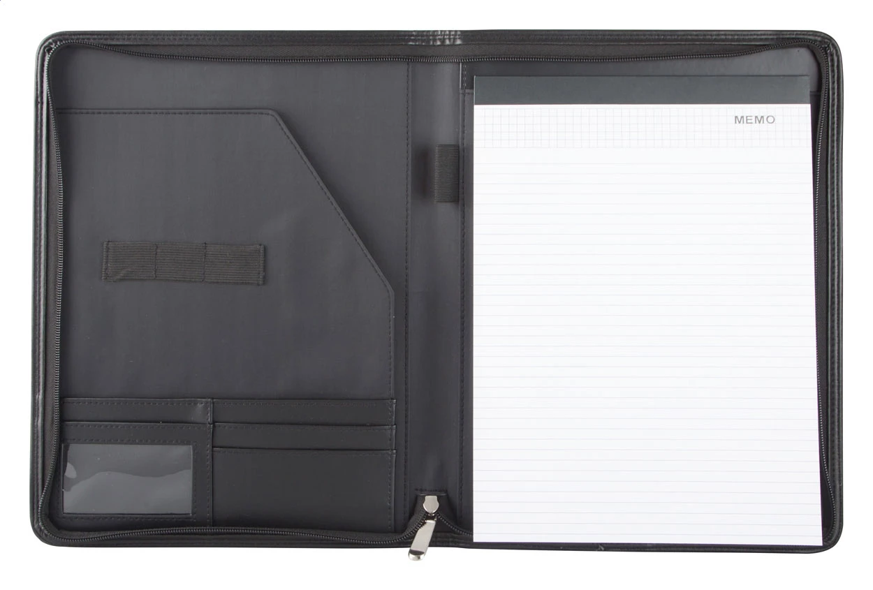 Zapinana teczka na dokumenty A4 ze skóry PU, z notatnikiem z 20 kartkami w linie oraz miejscem na długopis i wizytówki.