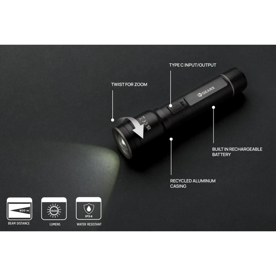 Duża latarka Gear X, ładowana przez USB, aluminium z recyklingu (NAX-P513.931)