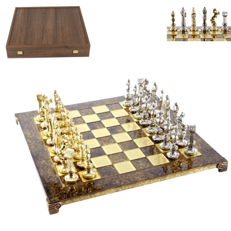 Piękne eleganckie szachy 36x36 cm wyprodukowane przez grecką firmę Manopoulos.