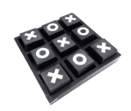 Drewniana plansza do gry w kółko i krzyżyk o wymiarach 24 x 24 cm. Jej czarno-biała kolorystyka sprawia, że pasuje do każdego wystroju – od klasycznego po nowoczesny.