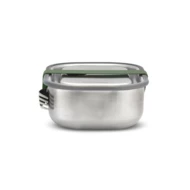 Pudełko śniadaniowe 1 L, lunchbox 3 w 1, nadaje się do przechowywania śniadania, mrożenia potraw oraz pieczenia w piekarniku, wykonane ze stali nierdzewnej z recyklingu, w komplecie łyżkowidelec, elastyczny pasek oraz przesuwana przegroda, podstawka oraz łyżkowidelec nadają się do mycia w zmywarce