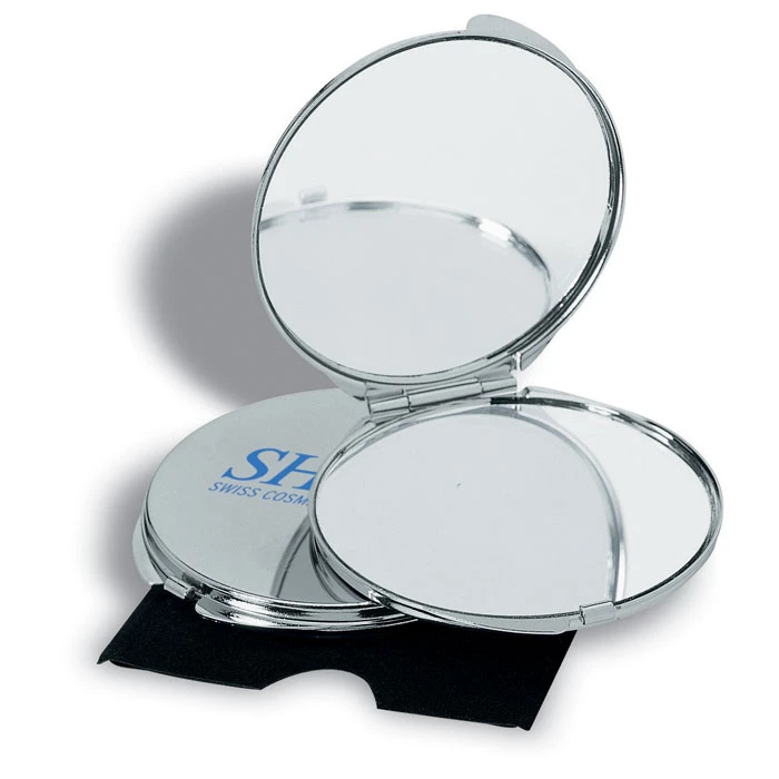 Lusterko do makijażu, zwykłe i powiększające, w welwetowym etui. Chromowany metal.