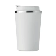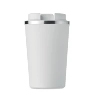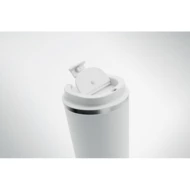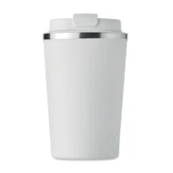 Dwuścienny kubek ze stali nierdzewnej z pokrywką z PP. Pojemność: 350 ml. Szczelny.