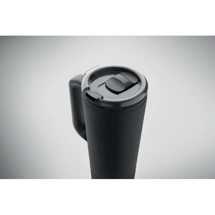 Kubek z podwójnymi ściankami ze stali nierdzewnej na zewnątrz i PP wewnątrz. Pokrywka z PS z funkcją sygnału dzwiękowego. Pojemność 700 ml.