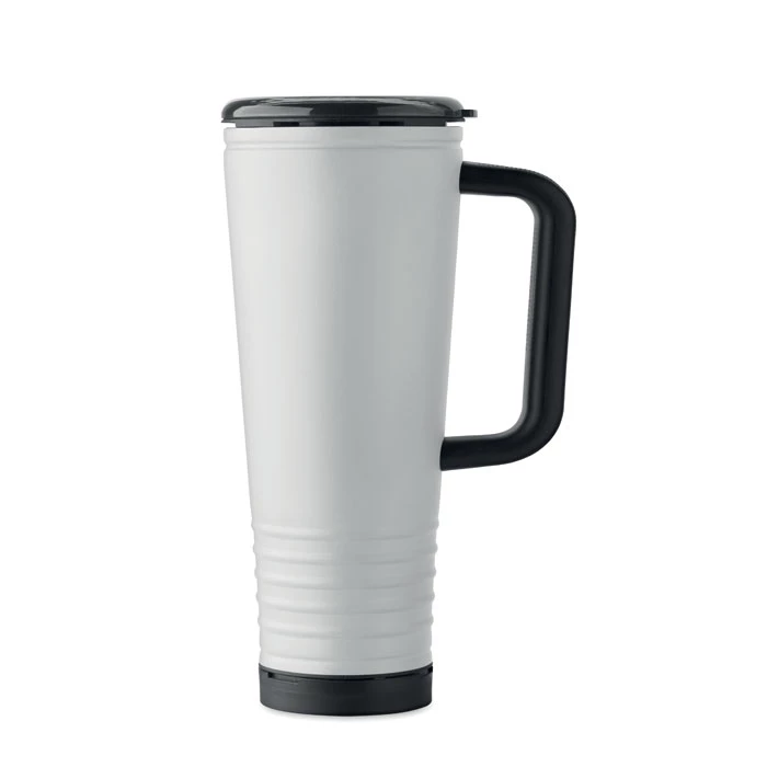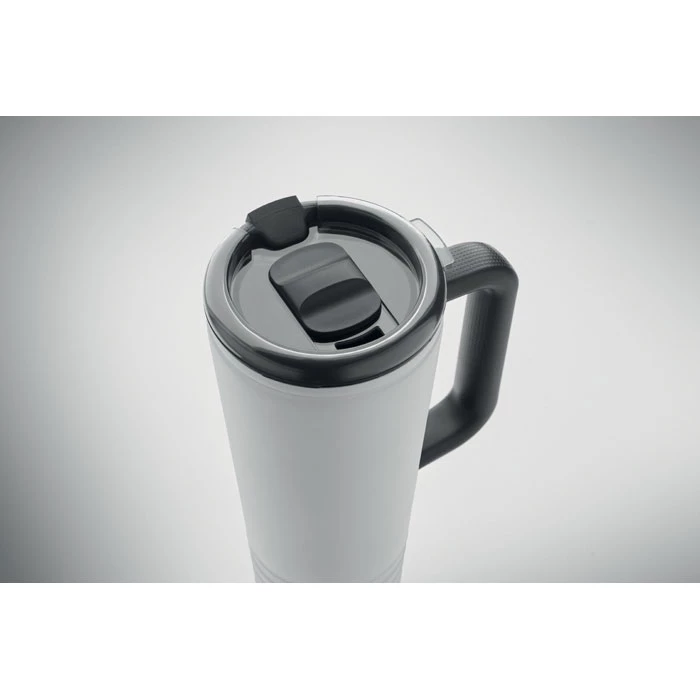 Kubek z podwójnymi ściankami ze stali nierdzewnej na zewnątrz i PP wewnątrz. Pokrywka z PS z funkcją sygnału dzwiękowego. Pojemność 700 ml.