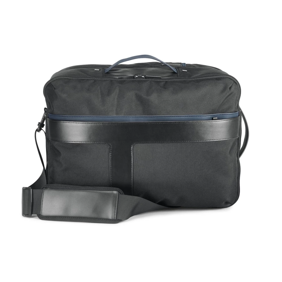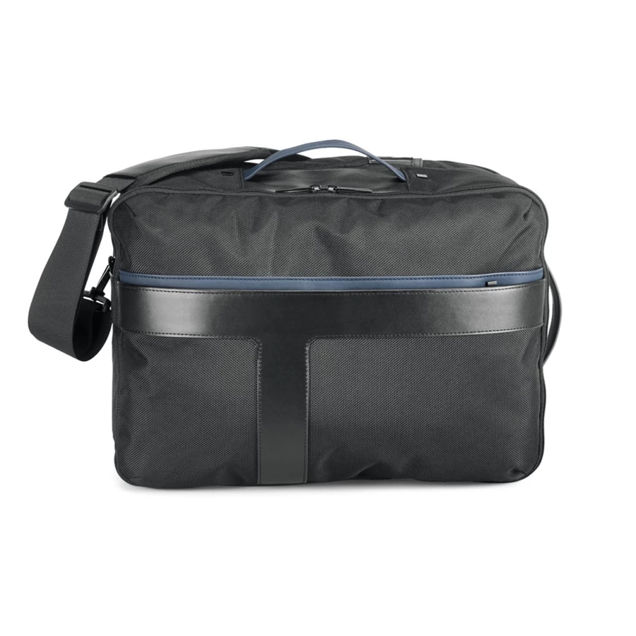 Plecak miejski 2 w 1, wykonany z materiału 1680D dla dodatkowej wytrzymałości, z detalami z poli-skóry. Jego konstrukcja sprawia, że jest to wyjątkowy i wszechstronny produkt, który może być używany jako plecak lub torba podróżna. Plecak ma przednią kieszeń z ukrytym zamkiem błyskawicznym, tylną kieszeń antykradzieżową i główną komorę z dwiema wyściełanymi kieszeniami na laptopa do 15.6„ i tablet do 10.5”. W zestawie pasek do wózka. Dwie części tego plecaka mogą być używane oddzielnie lub jako jeden element. Dostarczany w torbie z włókniny. Pojemność do 26 litrów. Produkt zawiera raport z testów jakości. 300 x 420 x 200 mm | Plecak: 300 x 420 x 75 mm | Torba podróżna: 300 x 420 x 130 mm | Torba: 550 x 580 x 210 mm