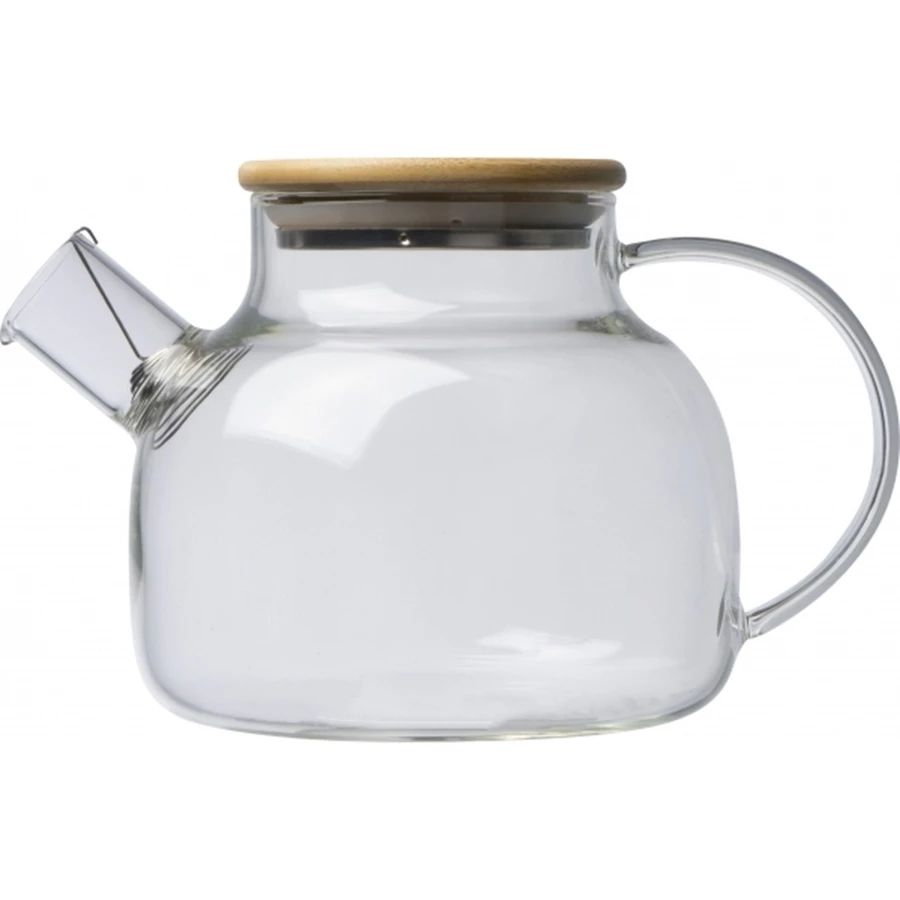 Szklany dzbanek o pojemności 1 000 ml. Dzbanek wyposażony w bambusowe wieczko oraz wyjmowaną spiralę umieszczoną w szyjce, dzięki której do kubka nie przedostaną się np. liście herbaty.