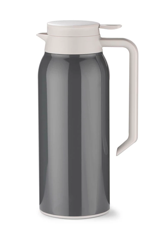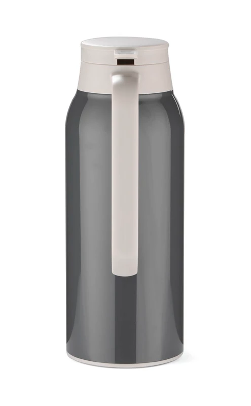 Dzbanek termiczny POTI o pojemności 1300 ml to praktyczny upominek w modnych kolorach szarości. Wykonany ze stali. Wnętrze dzbanka wykonane ze stali nierdzewnej o podwyższonym standardzie. Posiada wygodny uchwyt i przycisk do nalewania napojów. Utrzymuje temperaturę do 13 godz.