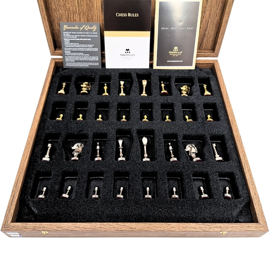 Szachy zapakowane są w piękne, luksusowe, drewniane pudło. W środku starannie wykonana wypraska do układania i bezpiecznego przechowywania figur.