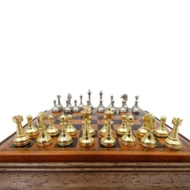 • Kolorystyka: brązowo-czarna szachownica, złocisto-srebrzyste figury