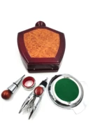 Wewnątrz eleganckiej, drewnianej butelki znajdują się akcesoria do wina: korkociąg z zatyczką - stoperem do butelki, dodatkowy stoper, podstawka pod butelkę oraz pierścień na szyjkę butelki – ociekacz, czyli idealne wyposażenie domowego barku. Akcesoria wykonane są ze stali nierdzewnej i są posrebrzane. Każdy element ma swoje miejsce wewnątrz opakowania-butelki w wyprasce. Żeby wyciąganie akcesoriów było wygodne, przy każdym elemencie znajdują się wgłębienia w wyprasce. Zestaw pakowany jest w estetyczne pudełko wykonane z białego, kredowanego kartonu.