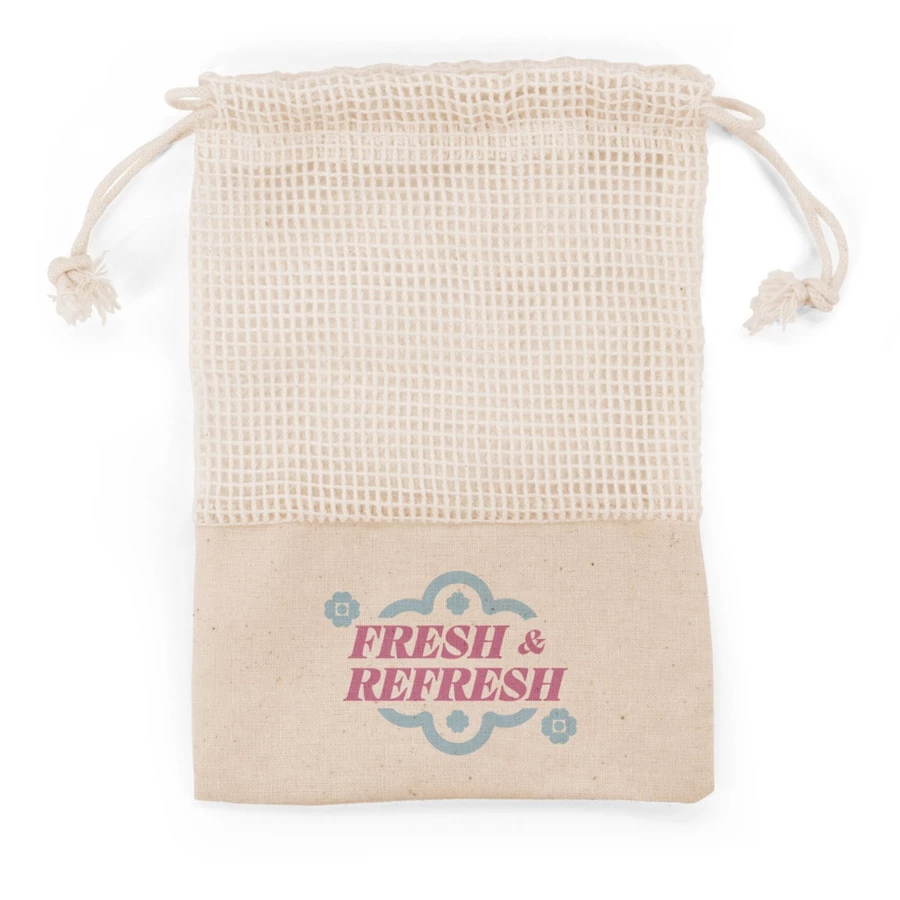 Zestaw 3 zmywalnych i wielokrotnego użytku płatków do oczyszczania twarzy, wykonanych z luksusowej mieszanki włókna bambusowego (40%), poliestru (10%), bawełny (47.5%) i elastanu (2.5%). Zapakowane w miękki, naturalny bawełniany woreczek, który można również wykorzystać do prania. Praktyczny i ekologiczny wybór do codziennej pielęgnacji skóry. 120 x 150 mm