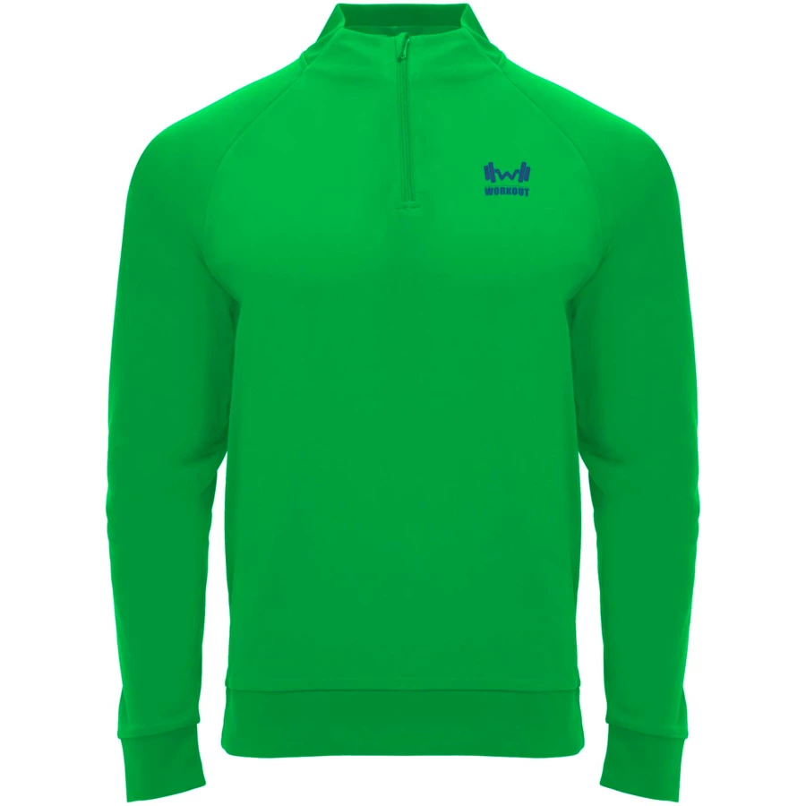 Materiał techniczny. Reglanowe rękawy. Wewnętrzny polar. Kołnierzyk z zamkiem błyskawicznym do połowy i dopasowanymi wzmocnionymi krytymi szwami. Prążkowany ściągacz 1x1 z tyłu kołnierza, na mankietach i u dołu. Usuwalna etykieta. Bluza pasująca do spodni Neapolis.