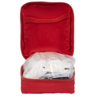 Apteczka pierwszej pomocy MDR klasy 2a. Nylonowe opakowanie zawiera 59 elementów do pierwszej pomocy o okresie przydatności 5 lat. Zawartość: 40 wodoodpornych plastrów, 6 suchych wacików, 4 waciki do oczyszczania skóry, 2 opatrunki pierwszej pomocy, 1 bandaż elastyczny, 1 nożyczki, 1 metalowa pęseta, 1 wacik na spalone kłaczki, 1 para rękawiczek jednorazowych, 1 plaster medyczny i 1 instrukcja obsługi.