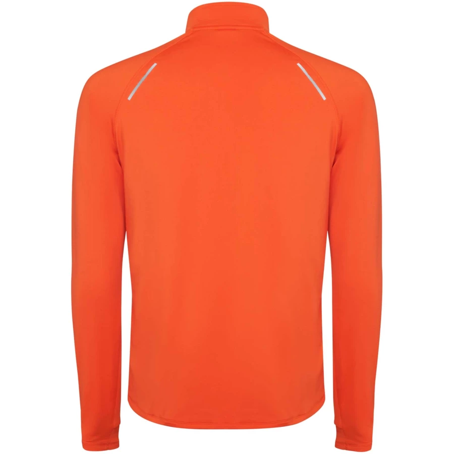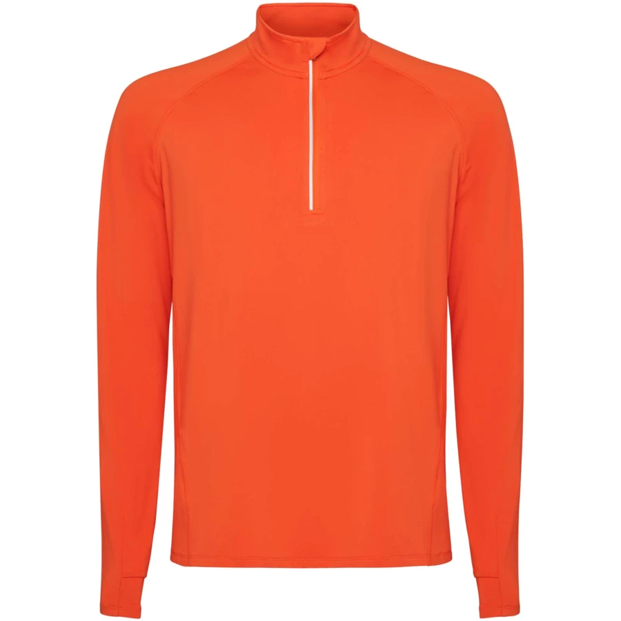 Męska techniczna bluza raglanowa z długim rękawem. Kołnierz zapinany do połowy na zamek błyskawiczny z odblaskowymi detalami. Wzmocnione osłony szwów. Mankiety z otworami na kciuki. Odblaskowe detale na plecach. Tył nieco dłuższy niż przód. Ciepły, szczotkowany materiał wewnętrzny.