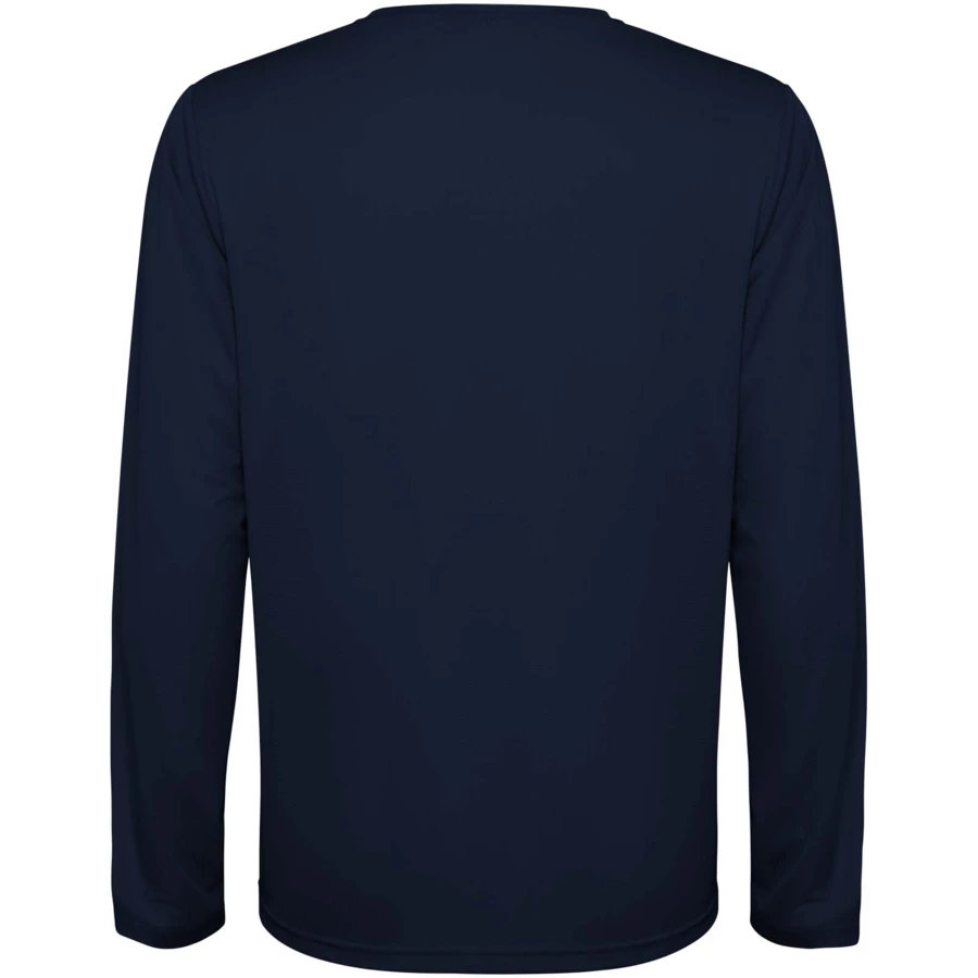Koszulka techniczna unisex z długim rękawem. Kołnierz z pasującymi kolorystycznie szwami. Tył nieco dłuższy niż przód. Szwy boczne przesunięte do przodu.