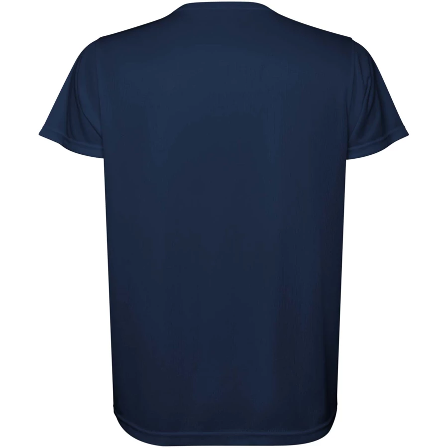 Męska koszulka techniczna z krótkim rękawem. Kołnierz z pasującymi kolorystycznie szwami. Tył nieco dłuższy niż przód. Szwy boczne przesunięte do przodu.