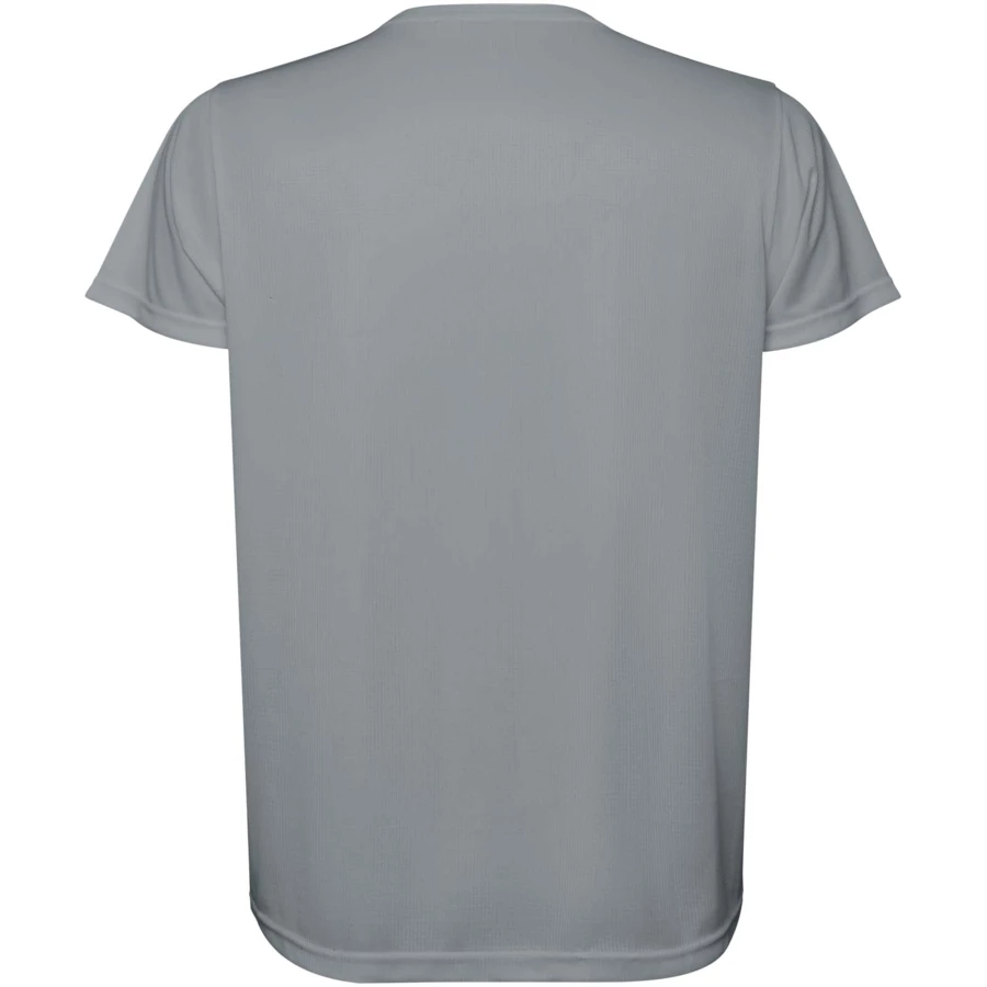 Męska koszulka techniczna z krótkim rękawem. Kołnierz z pasującymi kolorystycznie szwami. Tył nieco dłuższy niż przód. Szwy boczne przesunięte do przodu.